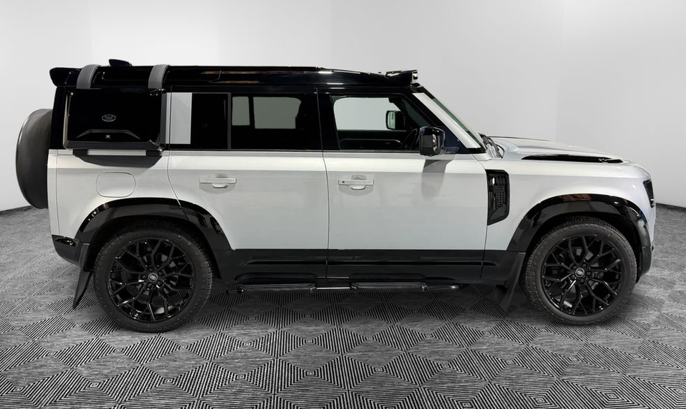 The vehicle has undergone a full exterior cosmetic transformation, including a full gloss black body kit, LED roof light pod, side box / ladder, spoiler and so much more. It sits on a brand new set of 22" Gloss Black Alloy Wheels, wrapped in again brand new Nangkang Conqueror All-Terrain Tyres, giving this Defender some serious style while not jeopardising its overland capabilities.